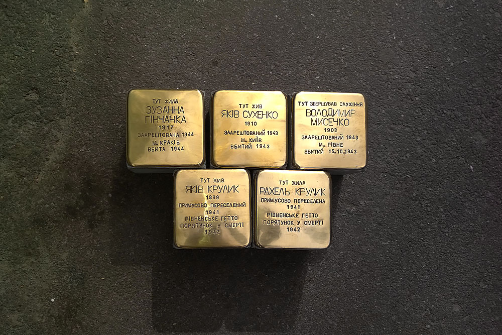 Перелік жертв нацизму, яким буде встановлено «камені спотикання»: отець Володимир Мисечко, поетеса Зузанна Гінчанка, Праведник народів світу Яків Сухенко, єврейська сім’я Якоб та Рахель Крулики.